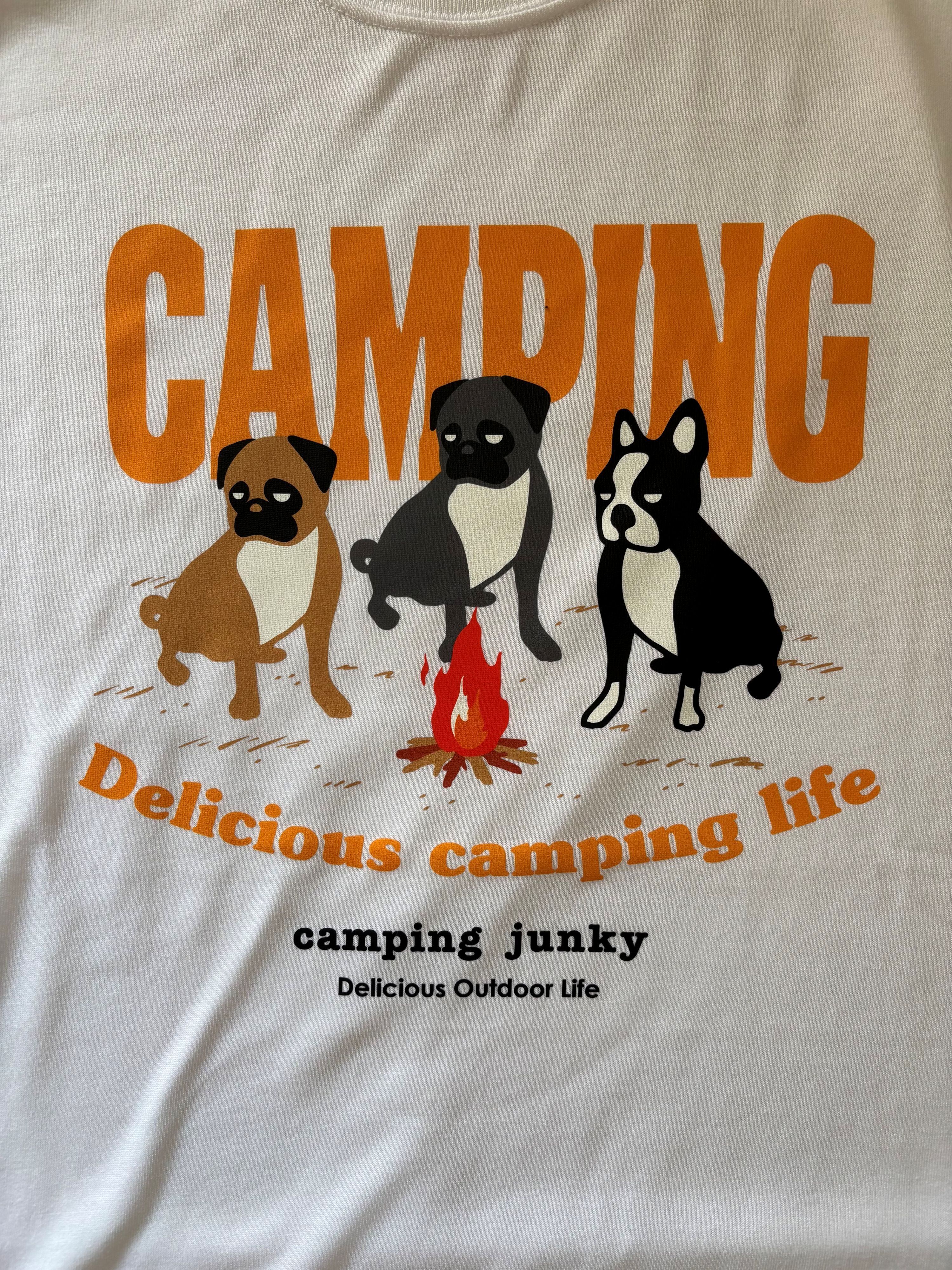 楽しそうに焚き火を囲んでいますね!ポリエステルの機能性の高さとコットンの滑らかな肌触りを実現した、吸水速乾機能付きの素材を採用しました。 ホワイト(M)(L) コットン90%ポリエステル10%